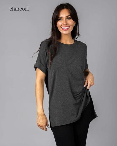 Boyfriend Cuffed Sleeve Tee - Charcoal